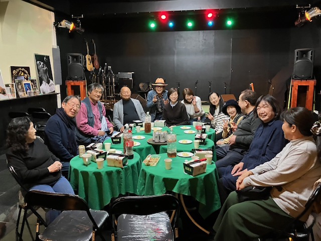 打ち上げをお店で、美味しい鶏めしのお弁当でワイワイでした。